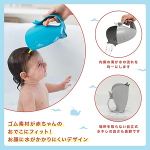 水が目に入らないように流せるクジラフォルムの便利バスグッズ。