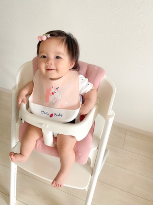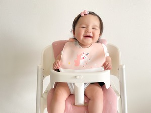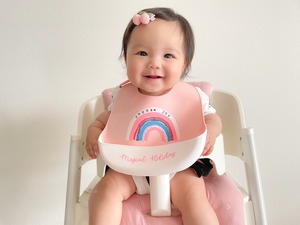 お子さまの可愛らしさを引き立てるシリコン製のエプロン。