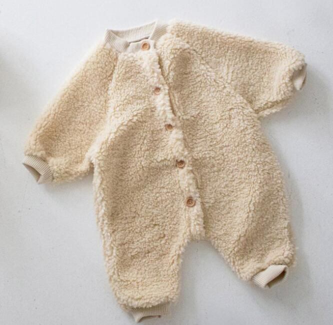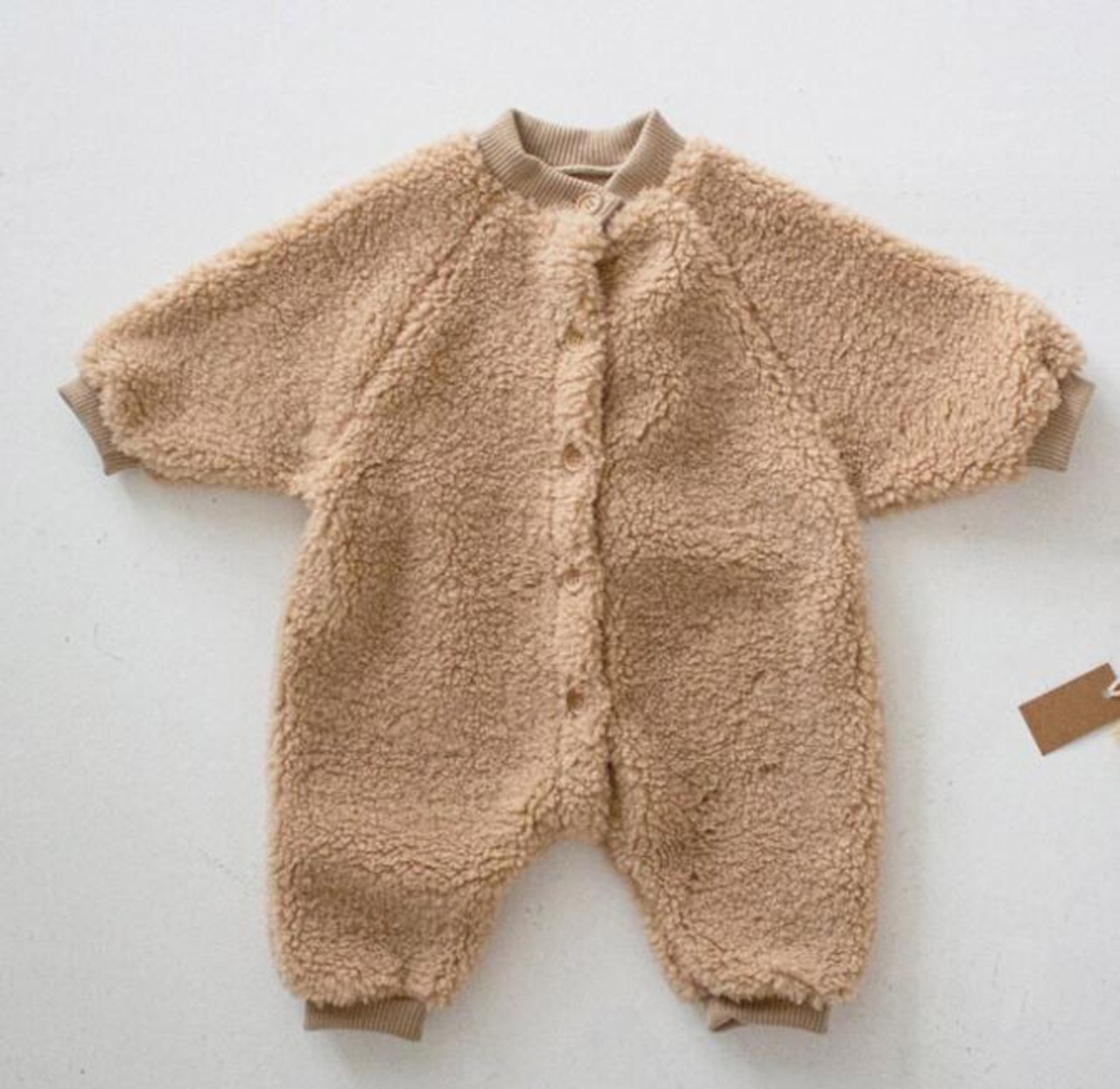 [66-100cm]くま耳帽子付き もこもこロンパース