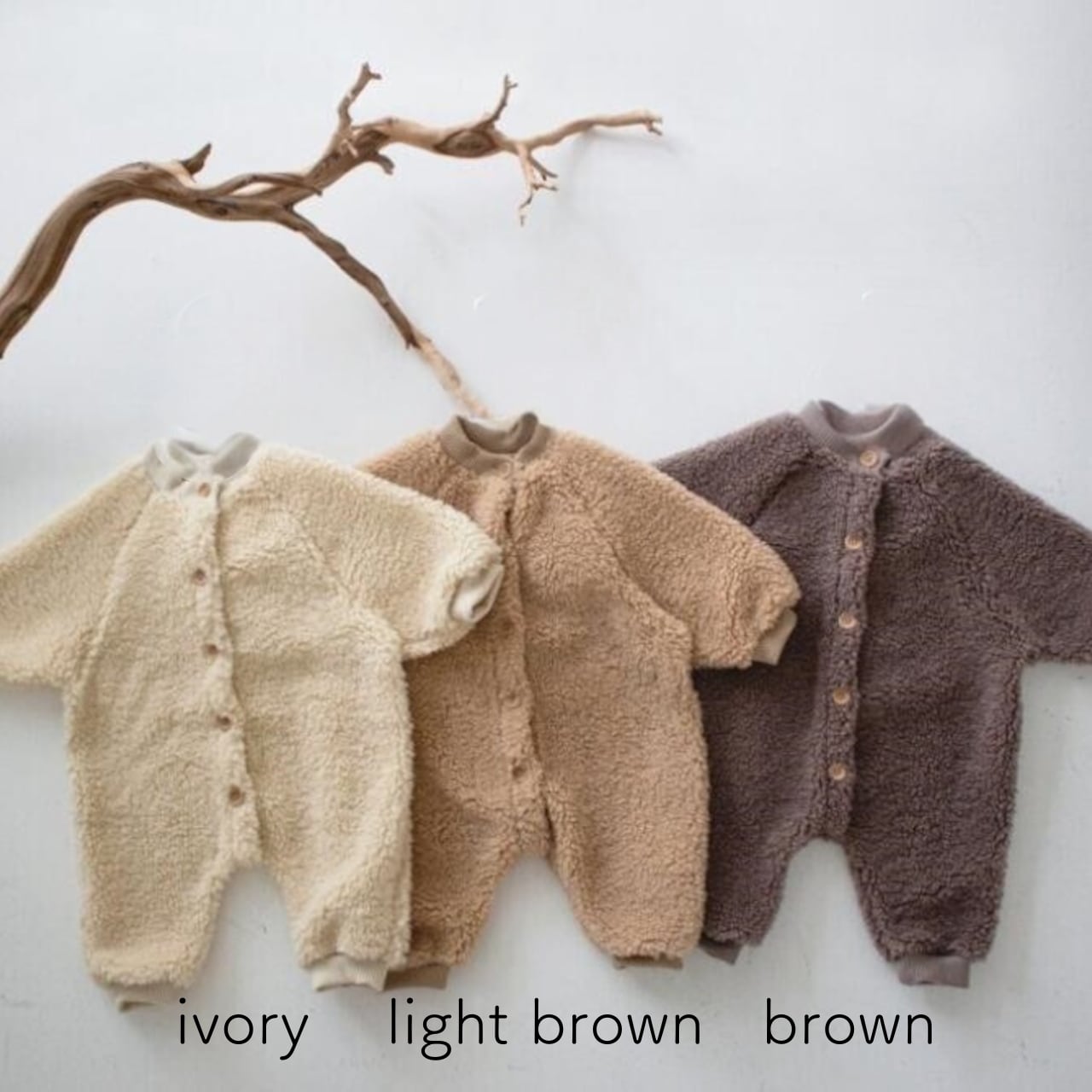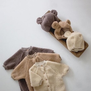 66-73cm即納|くま耳もこもこロンパース|帽子付き