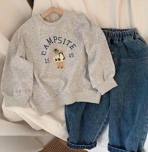 90-110cm|在庫限り|くまプリント長袖Tシャツ
