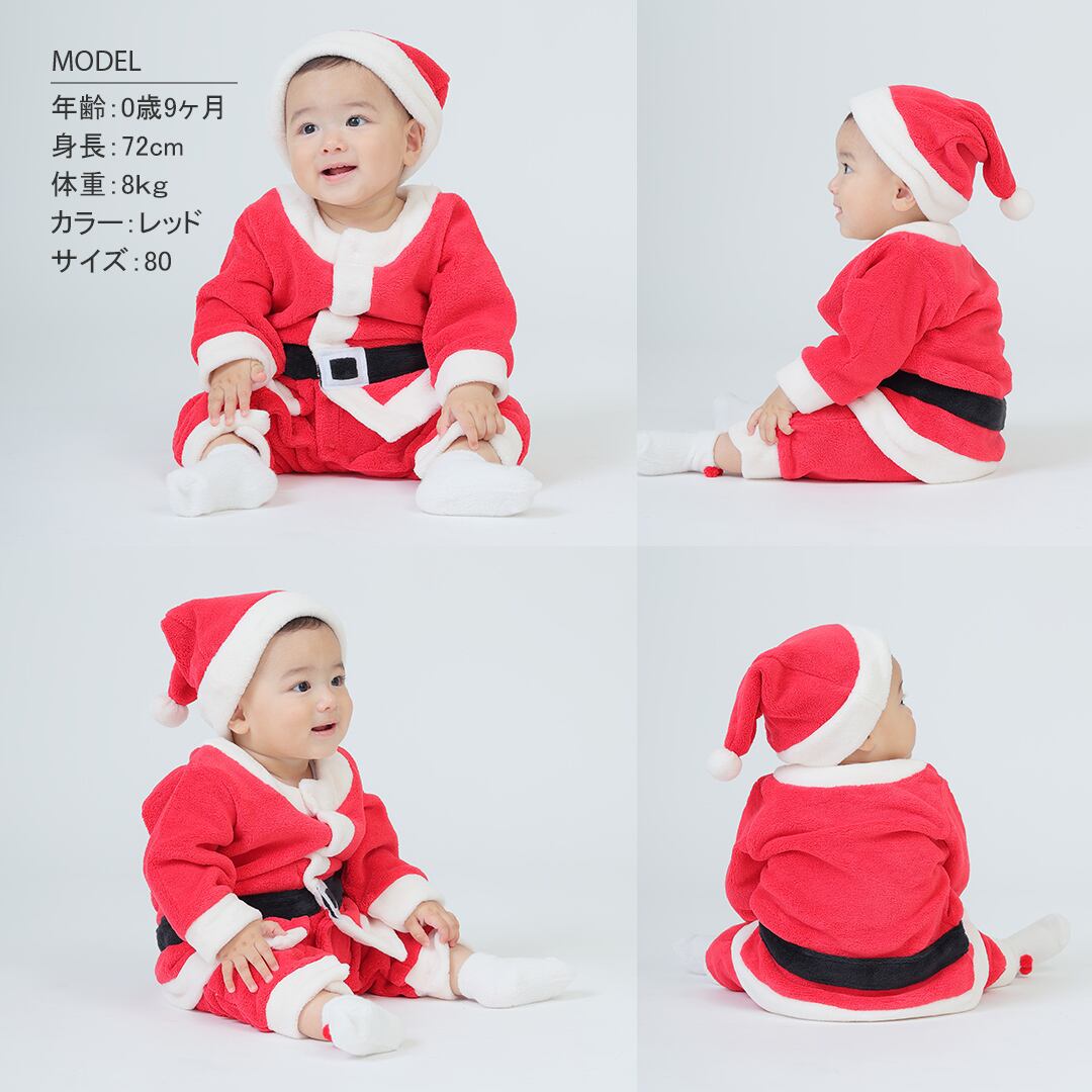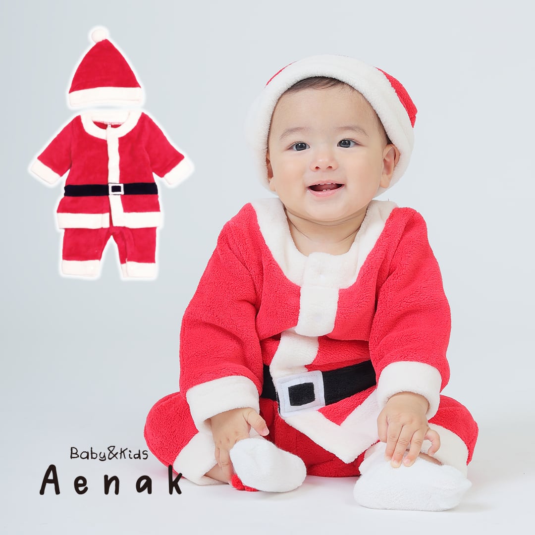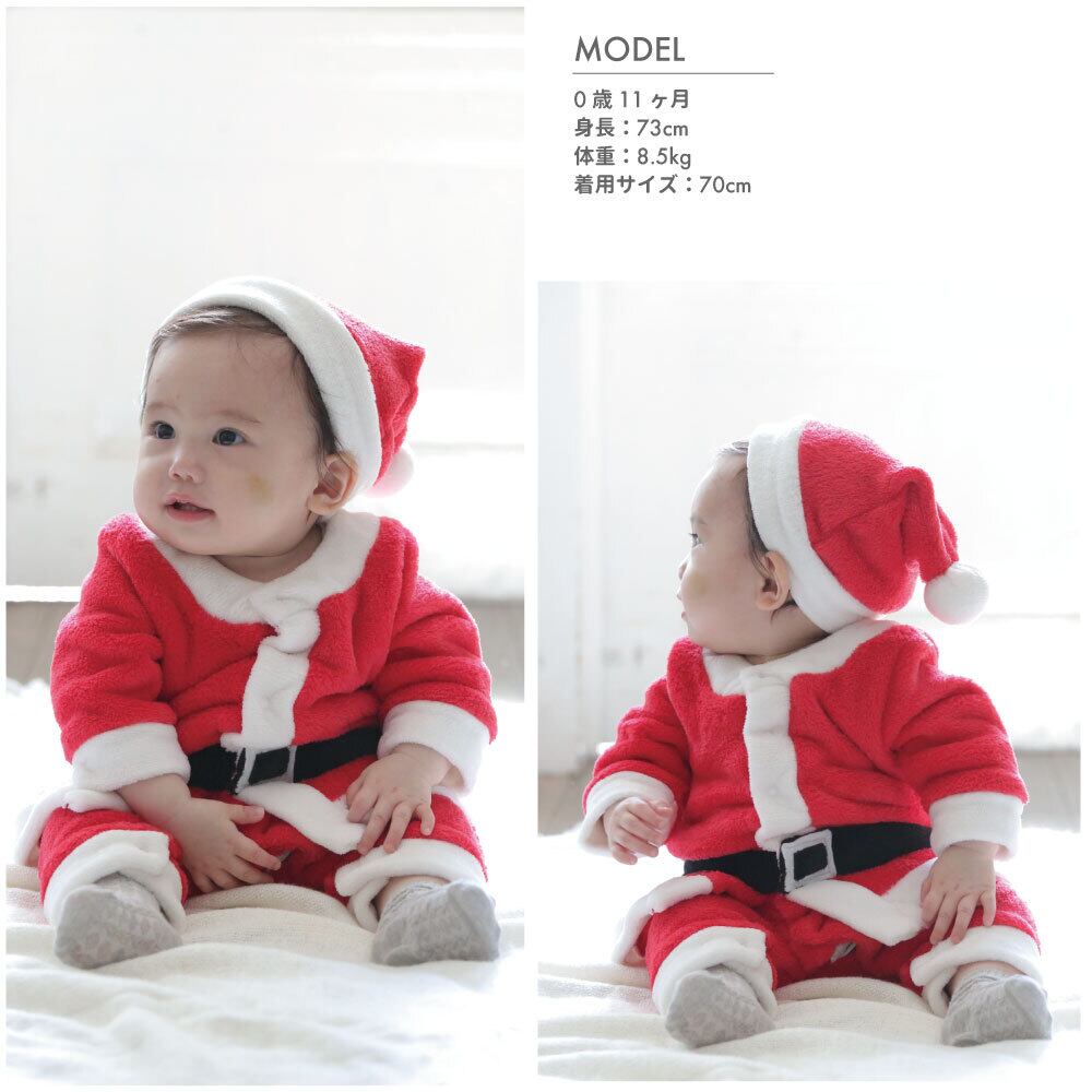 [60-90cm] 帽子付き サンタ ボア カバーオール