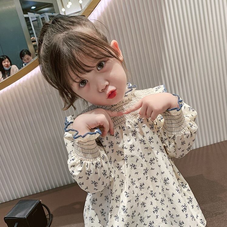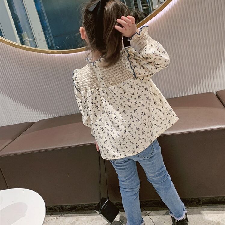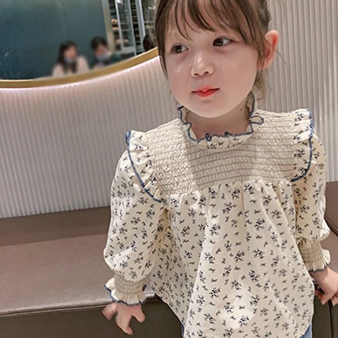 [90-140cm] 小花柄長袖シャツ