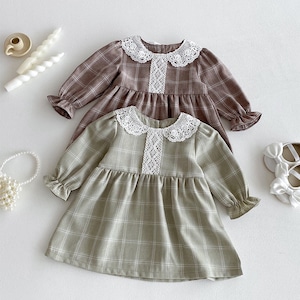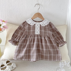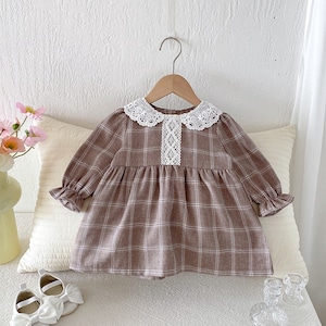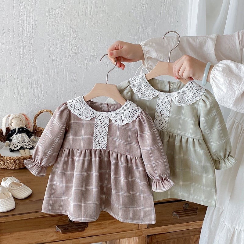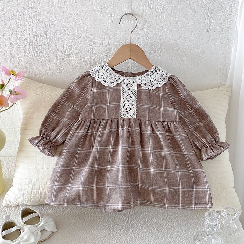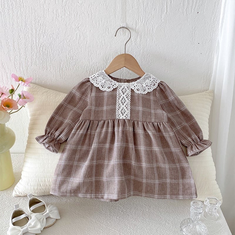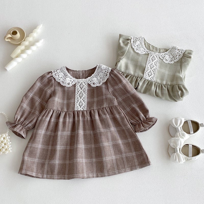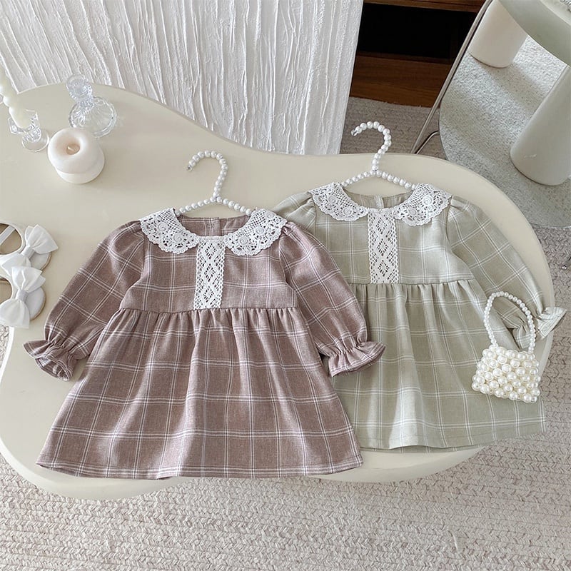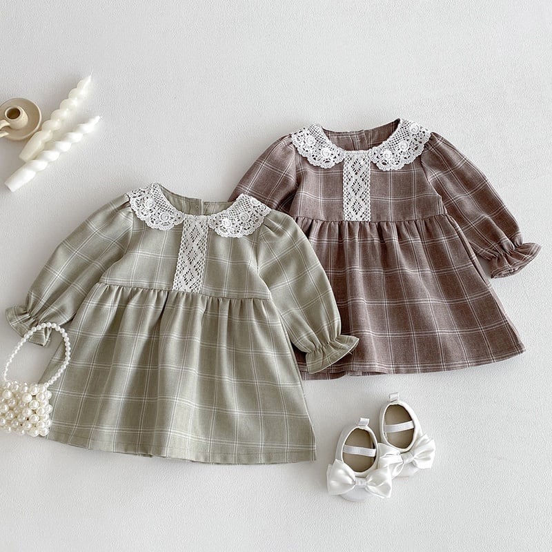 73-120cm|レース襟チェックワンピース|姉妹リンク
