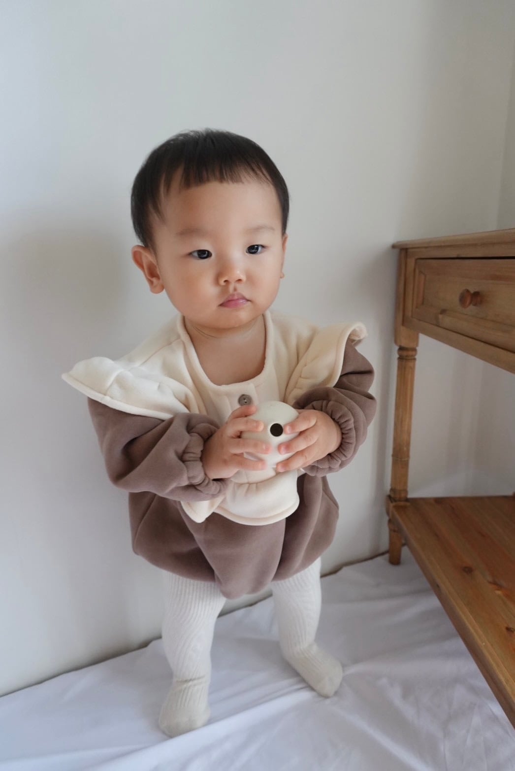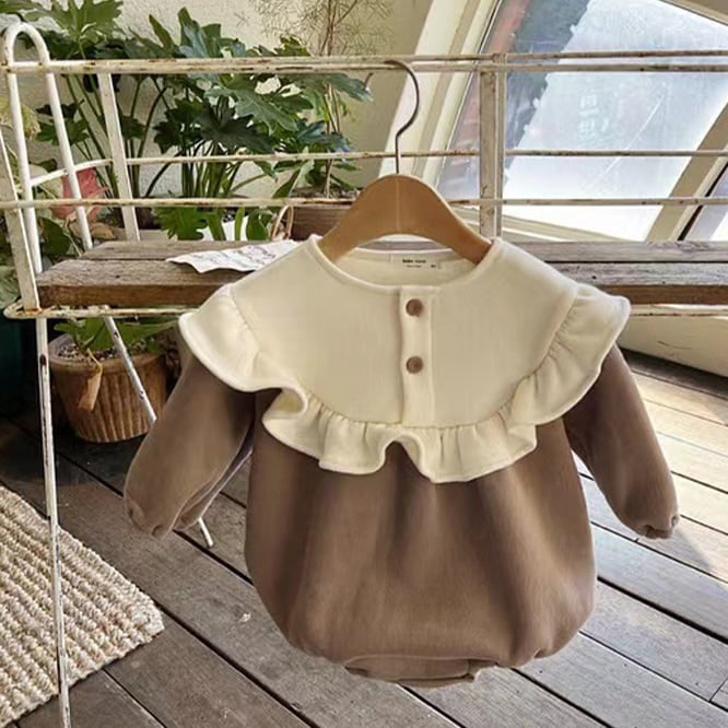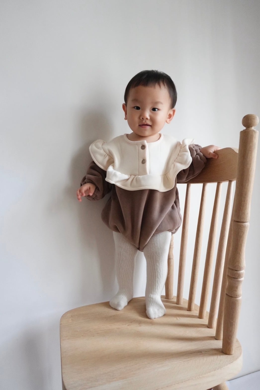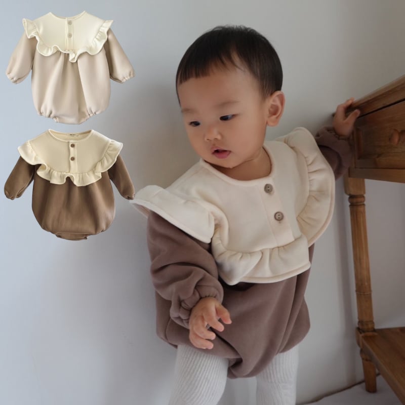 66-90cm|裏起毛|フリルバイカラーロンパース