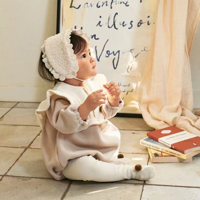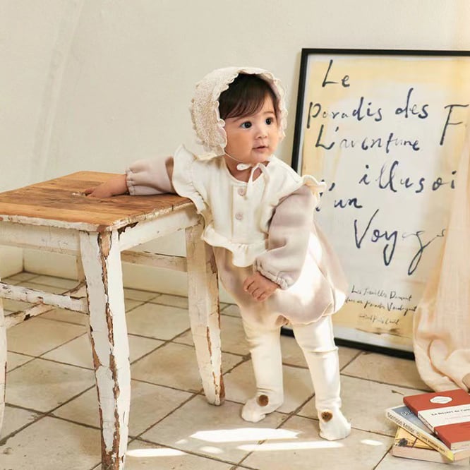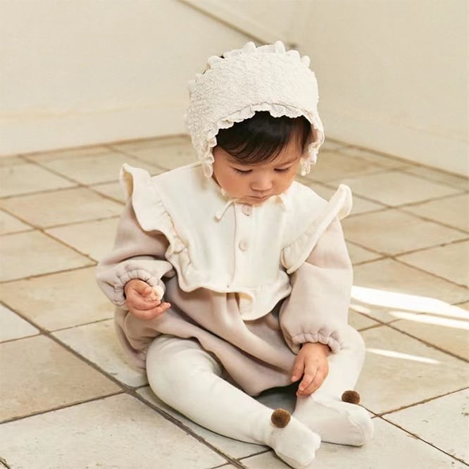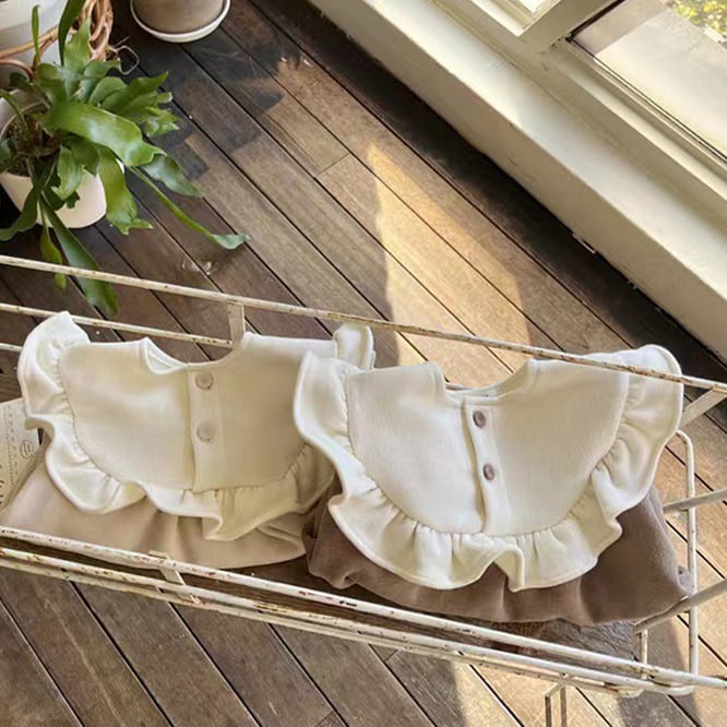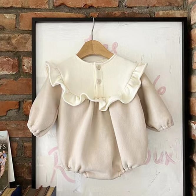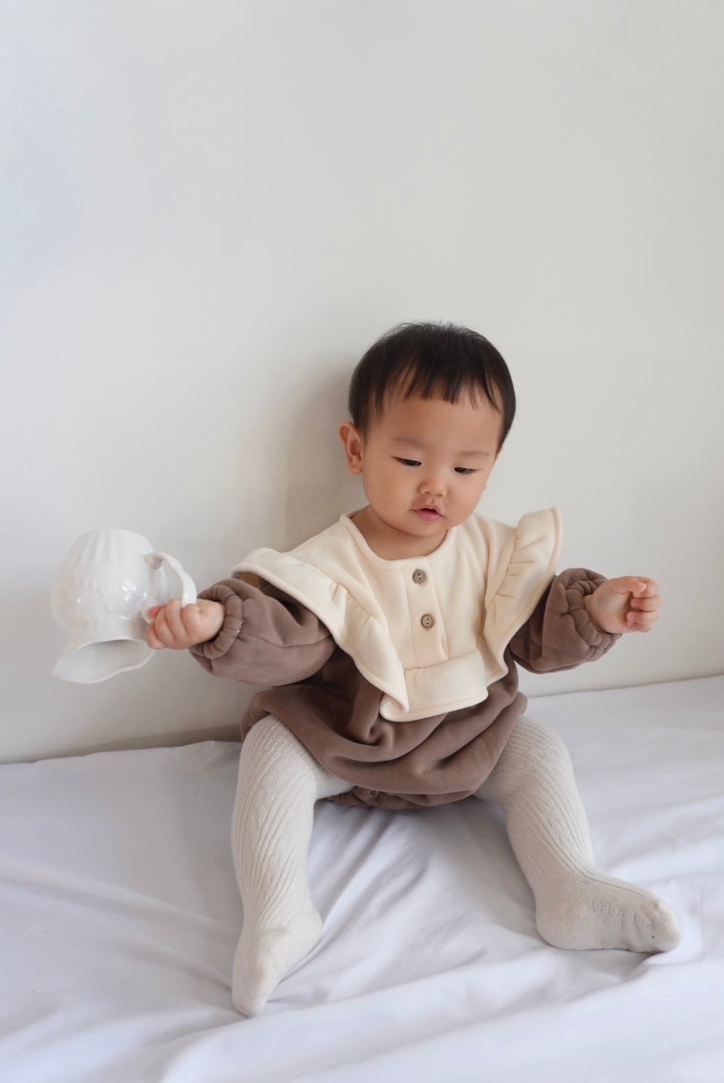 66-90cm|裏起毛|フリルバイカラーロンパース