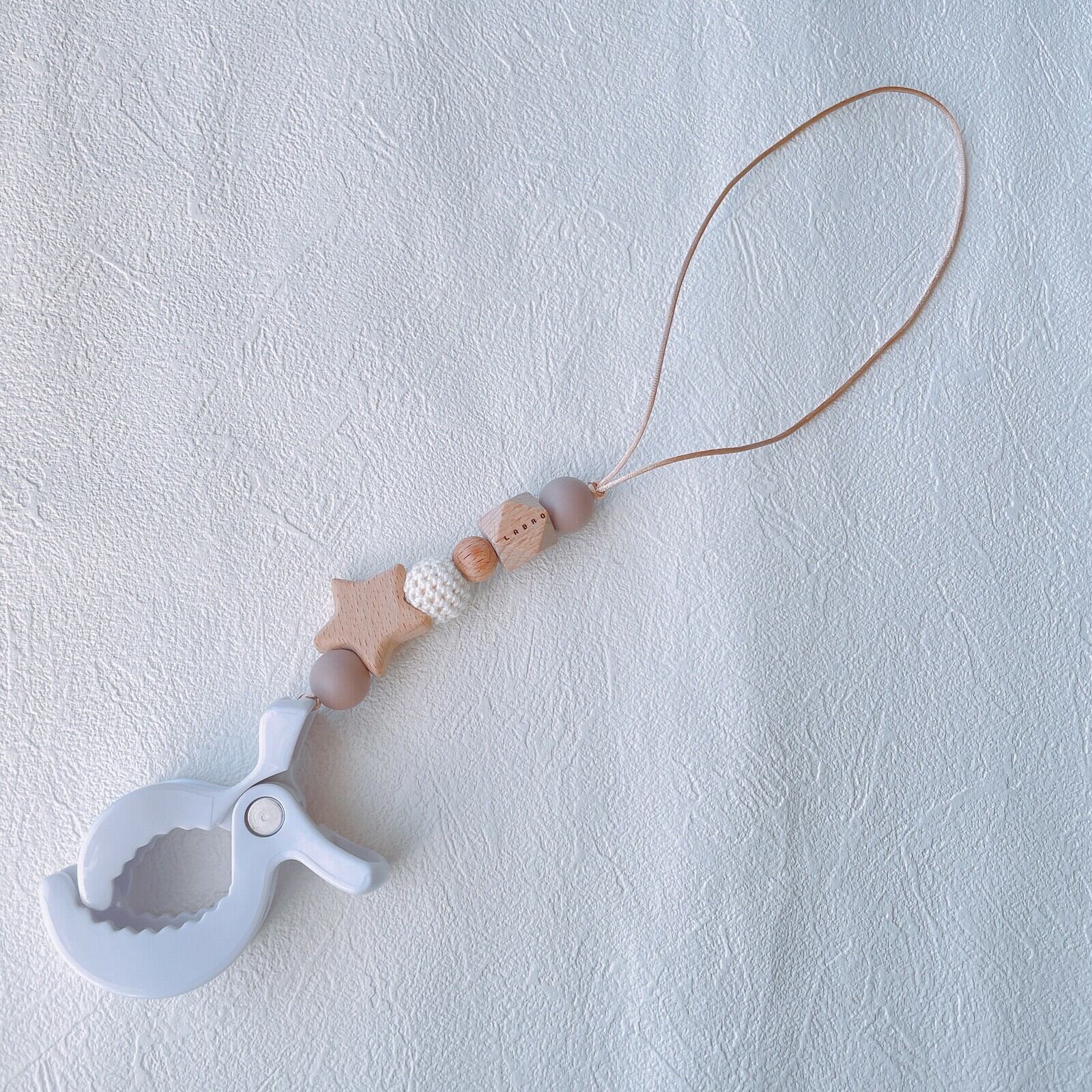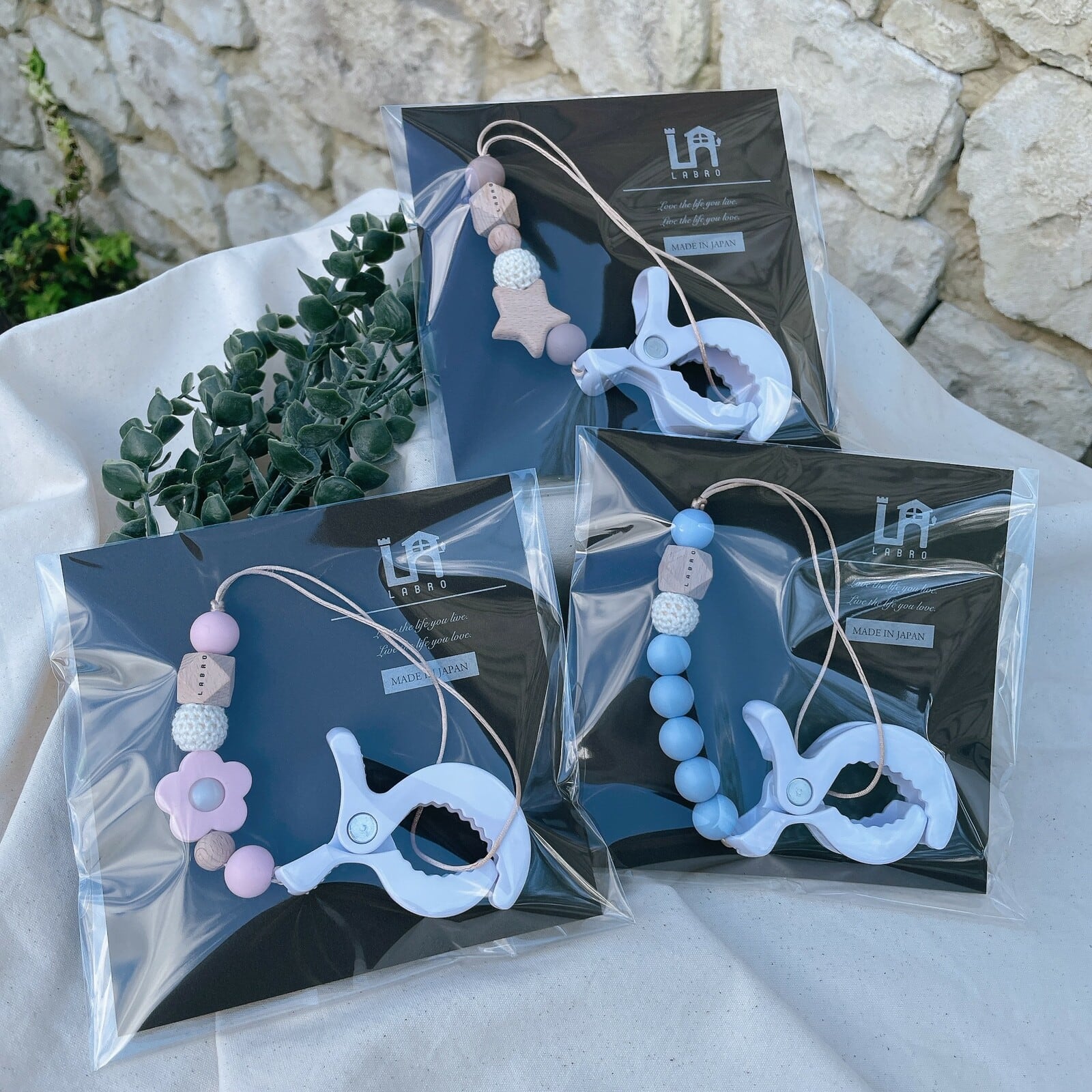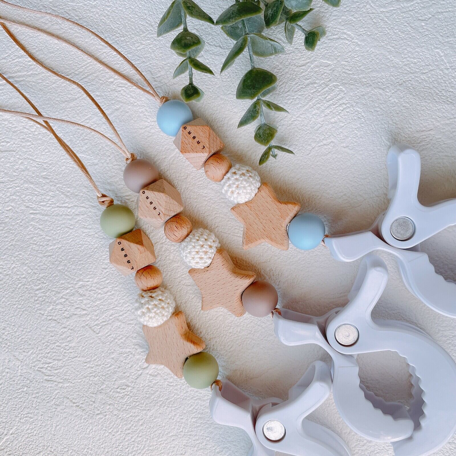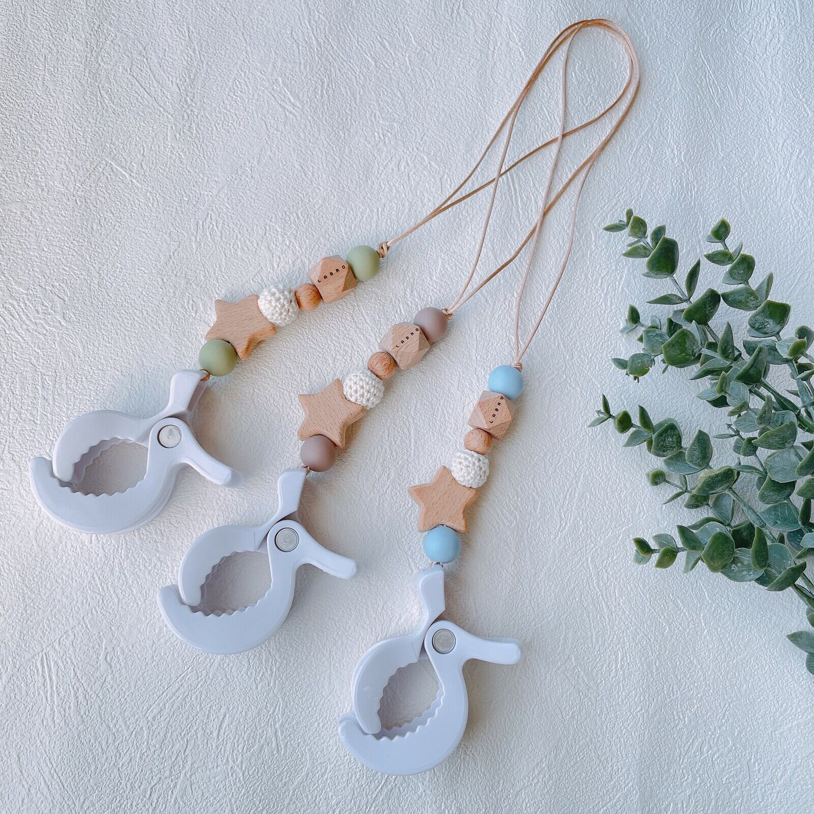 ビーズ商品は赤ちゃんが口に入れても安心な素材でお作りしています。
