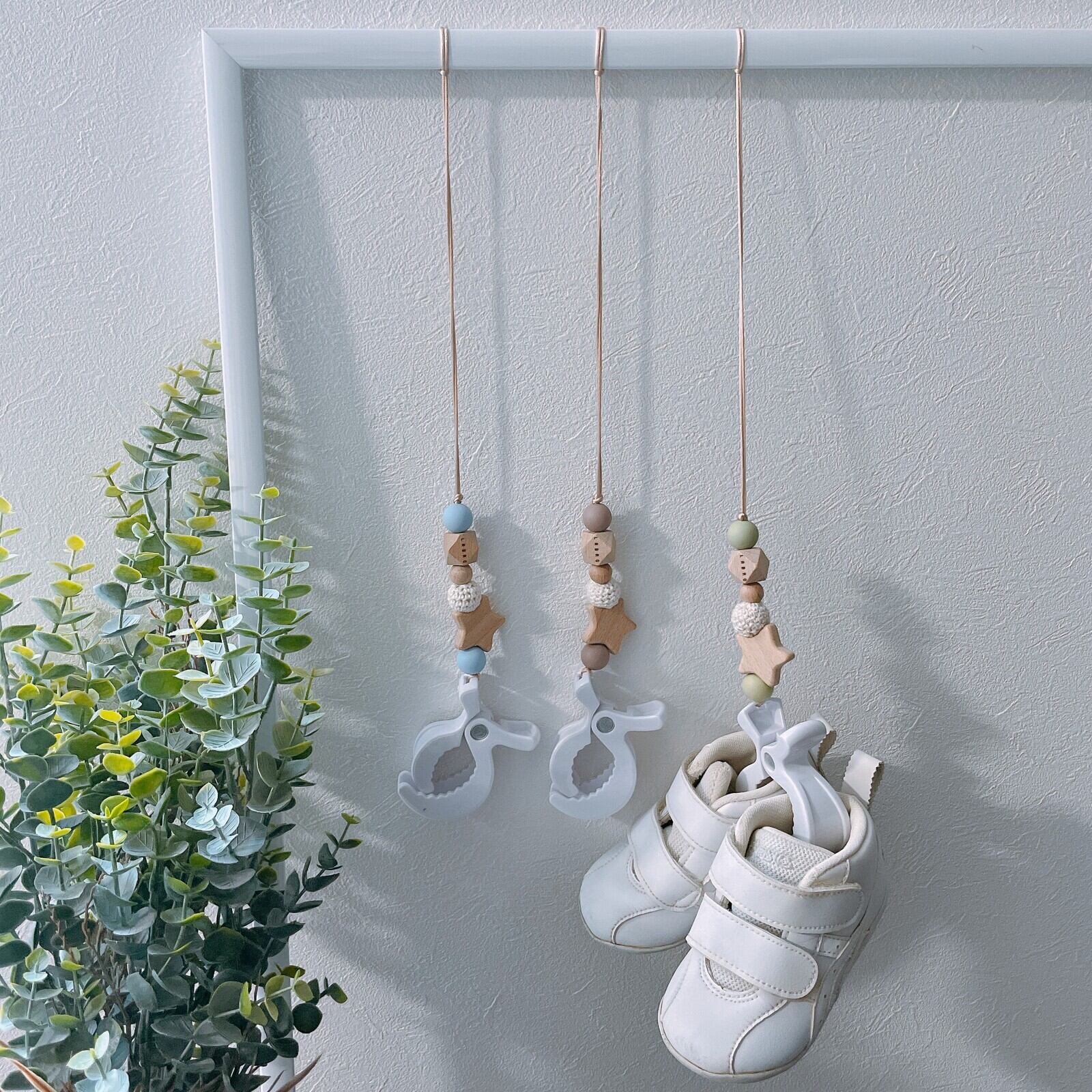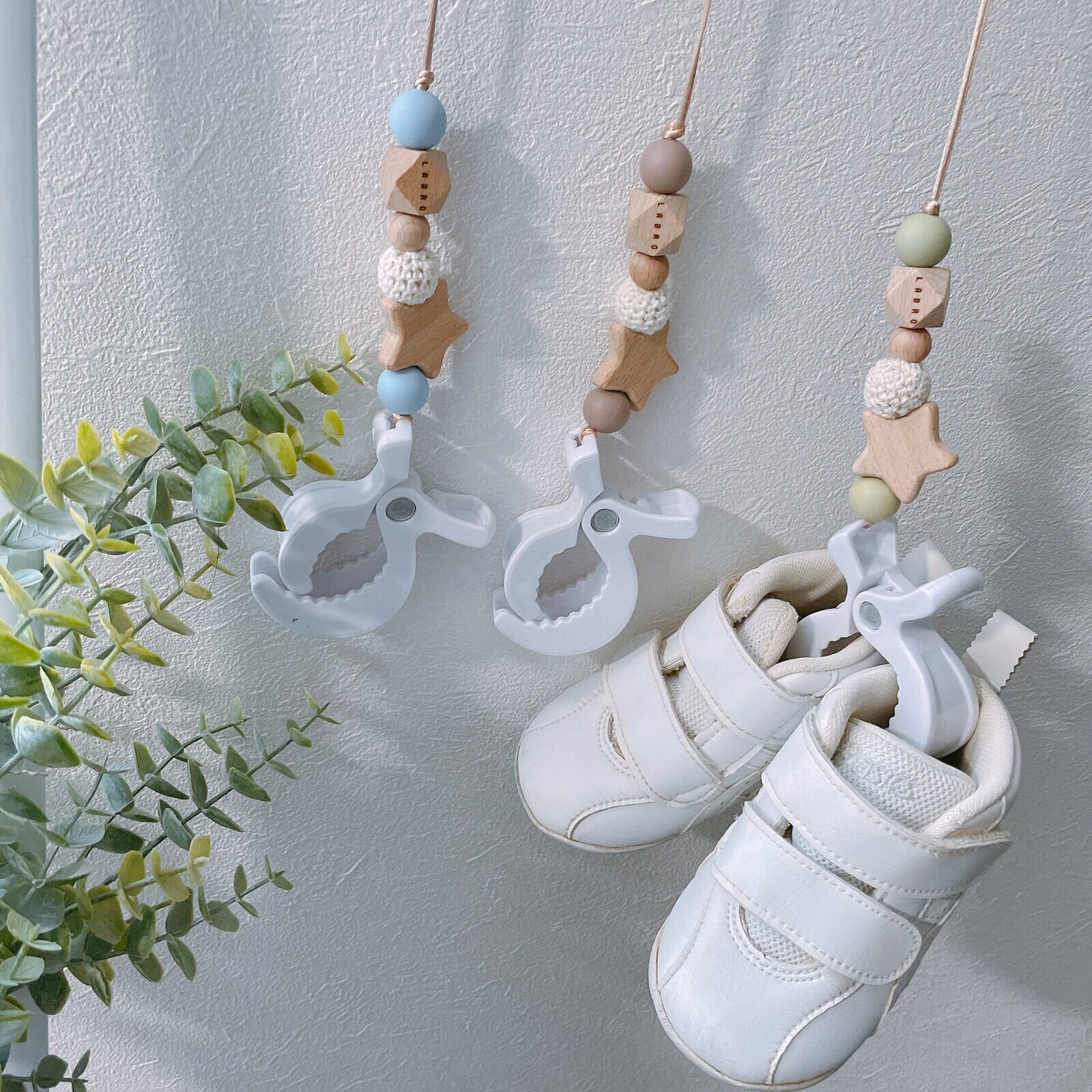 ベビーカーにつけておく靴のクリップ汚れてしまったとき、ベビーカーでお昼寝するとき靴の置き場所に困るときの助け舟。