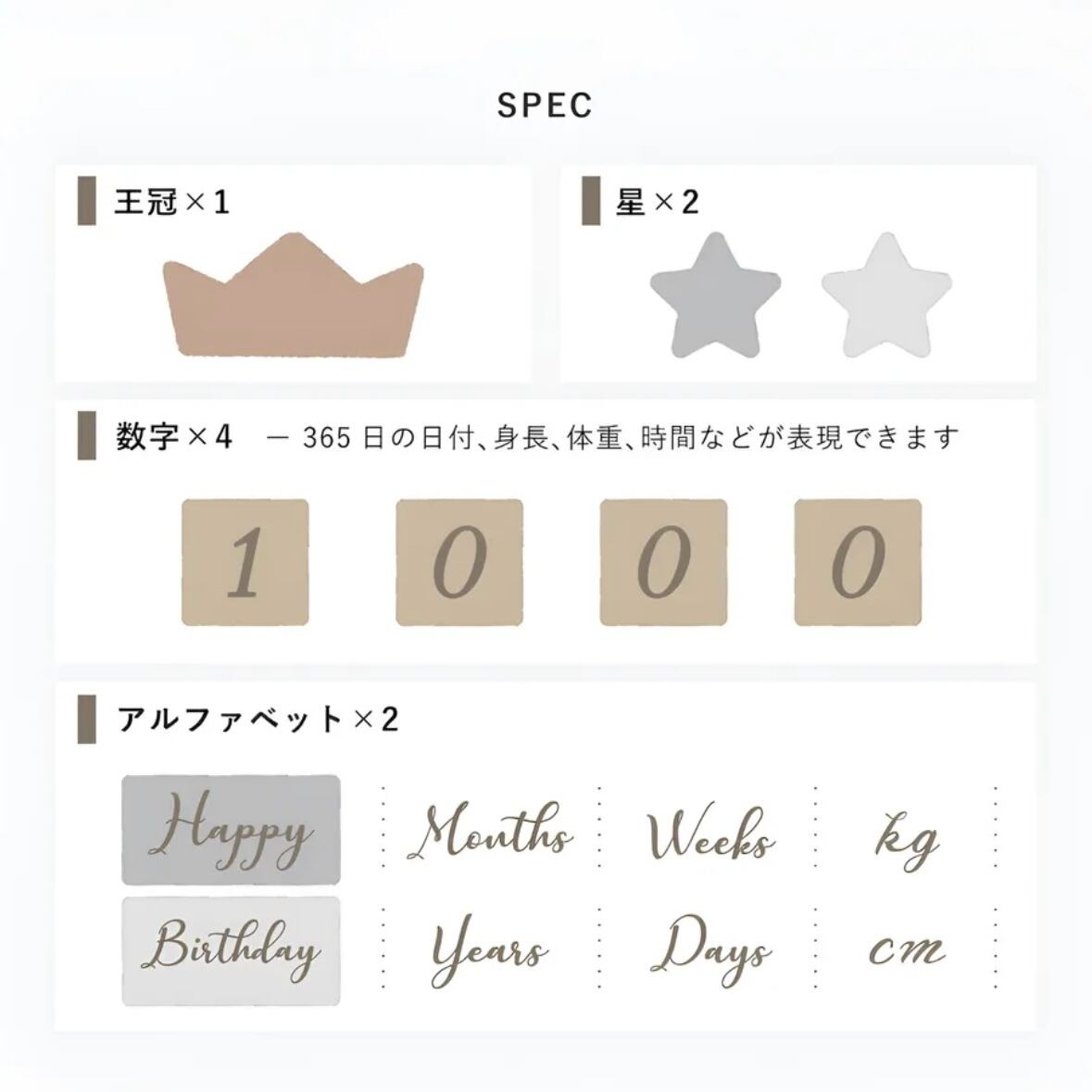365日の日付、身長、体重、時間などが表現できる、4桁の数字と英語。