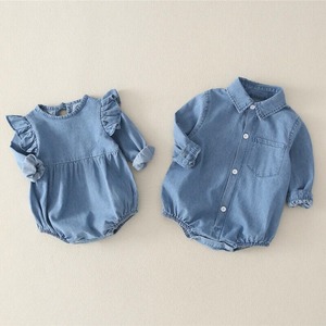 ロンパース / 赤ちゃん / ベビー服 / おしゃれ / お出かけ / キッズ / デニム / 快適 / こども服 / かわいい / 姉妹 / 兄弟 / お揃い / リンクコーデ / ペアルック / 海外子供服 / 春服 / お花見 / セットアップ / コーディネート / 普段着ロンパース