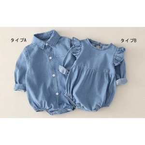 [66-90cm] デニムシャツロンパース